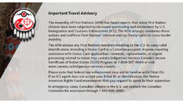 By Chevi Rabbit, Local Journalism Initiative Reporter (ANNews) – The Assembly of First Nations (AFN) has issued an urgent travel advisory for First Nations citizens…