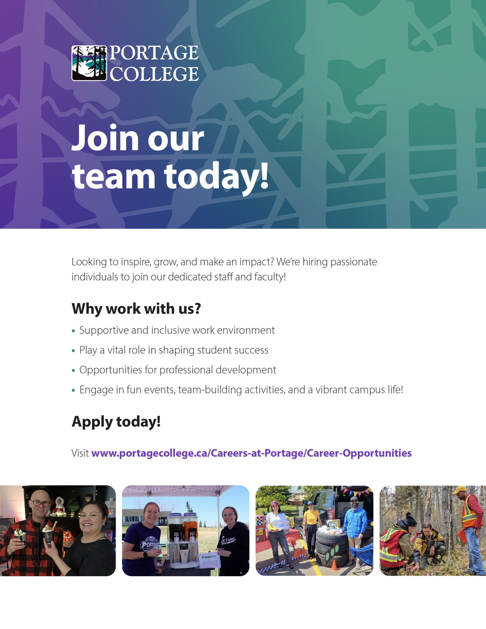 Career Opportunities – Portage College January 29, 2026 Full Time Part Time Temporary Lac La Biche, Cold Lake or St. Paul Campus Posted 2 weeks ago Website Portage College To apply for this job please visit portagecollege.ca.