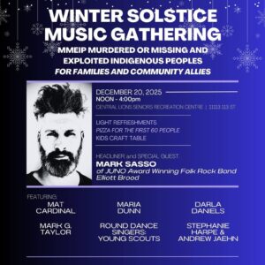 The Winter Solstice Gathering is intended to be a respectful, welcoming space for families, survivors, and allies. Community members are encouraged to attend in solidarity to honour those who have been lost and stand with families seeking justice, safety, and healing.